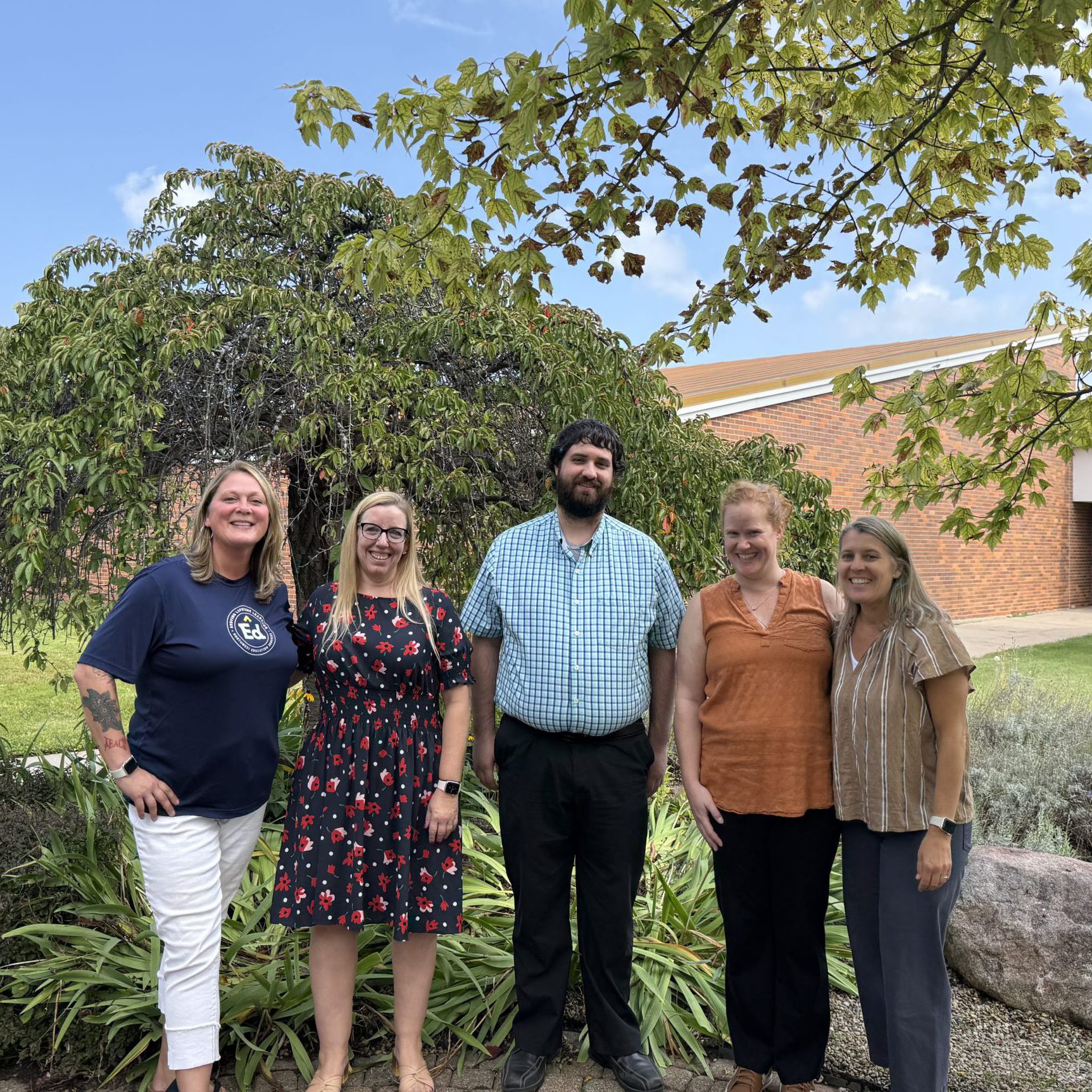 A new bargaining team of educators at the intermediate school district in Traverse City used MEA resources and member solidarity to achieve a strong contract. (L-R) Erin Ryan, Sheri Connors, Pat Louzon, Lauren Holmes, Lauren Davison.